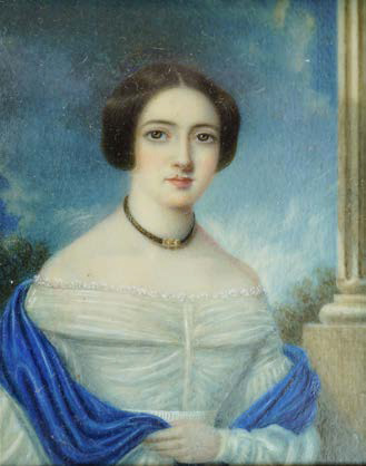 Forrer’s marvellous hairwork brooch came to me accompanied by a portrait miniature on ivory labelled ‘Lady Hindmarsh’, the wife of the first governor of South Australia, Rear Admiral Sir John Hindmarsh, who held office from December 1836 to July 1838 after which he was recalled to London.