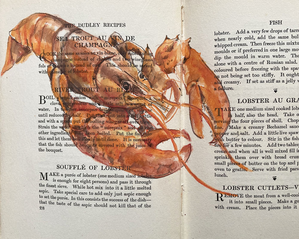 Alissa Duke is a law librarian, artist and book lover whose practice sits at the intersection of the written word and visual art. Since 2014 she has been rescuing books that are about to be discarded, drawing on their pages in watercolour pencil — each image inspired by the words on the page, giving the book a new life and a new audience.