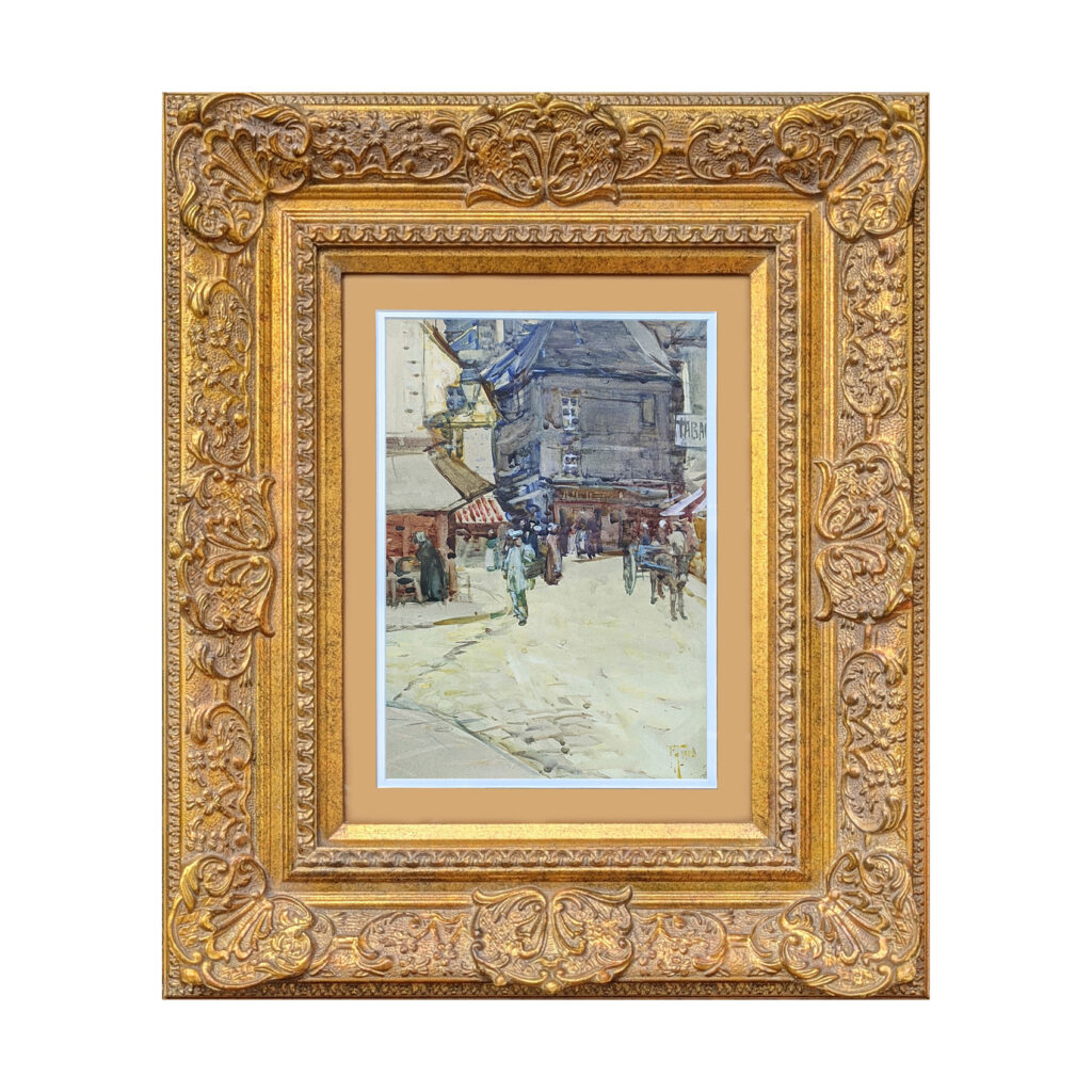 Pavel Chmarov was a famous, award-winning Russian Impressionist, known as the ‘Renoir Of Russia’. He was born in Voronezh to a poor peasant family in 1874. In 1893, he went to study at a free art school run by L. G. Solovyov, where drawing and open air sketches were emphasised. The following year he was admitted for graduate studies at the Imperial Academy of Art. In the workshop led by the famed Ilya Repin, he became acquainted with Malyavin, Kustodiev & Ostroumova-Lebedeva. In 1899, he received a gold medal, the official title of ‘artist’, a government stipend & a scholarship to pursue his studies abroad. He travelled to Vienna, Rome, Florence, Venice and Munich. In Munich, he studied at the art school of Anton Aschbe along with Borisov-Musatov. In 1904, he was awarded a gold medal at the International Exhibition of St. Louis. Chmarov displayed his works at the Academy of Fine Arts. Between 1900-10, he made a series of portraits of aristocrats, industrialists & prominent figures, as well as of the Czar Nicholas II & other members of the imperial family. He was appointed a court painter. He painted large scenes of battles, & decorative panels, & created drawings for newspapers, designs for the theatre, & illustrations for the works of Nekrasov and Pushkin & Zabelin. In 1916, Chmarov was elected an academician of the Academy of Fine Arts. At the beginning of 1923, he left Russia for Rome & settled in Paris. He worked mainly on commission, painting portraits, landscapes with bathers or young peasant women in Russian costumes, imbued with nostalgia for his native land, as well as numerous still lifes. He participated in exhibitions of Russian art in Paris & various cities in Germany, England, Holland, Belgium, Argentina & Yugoslavia. During WWII, he moved with his family to Boulogne-Billancourt, where they became parishioners of the Orthodox Church of St Nicholas.
