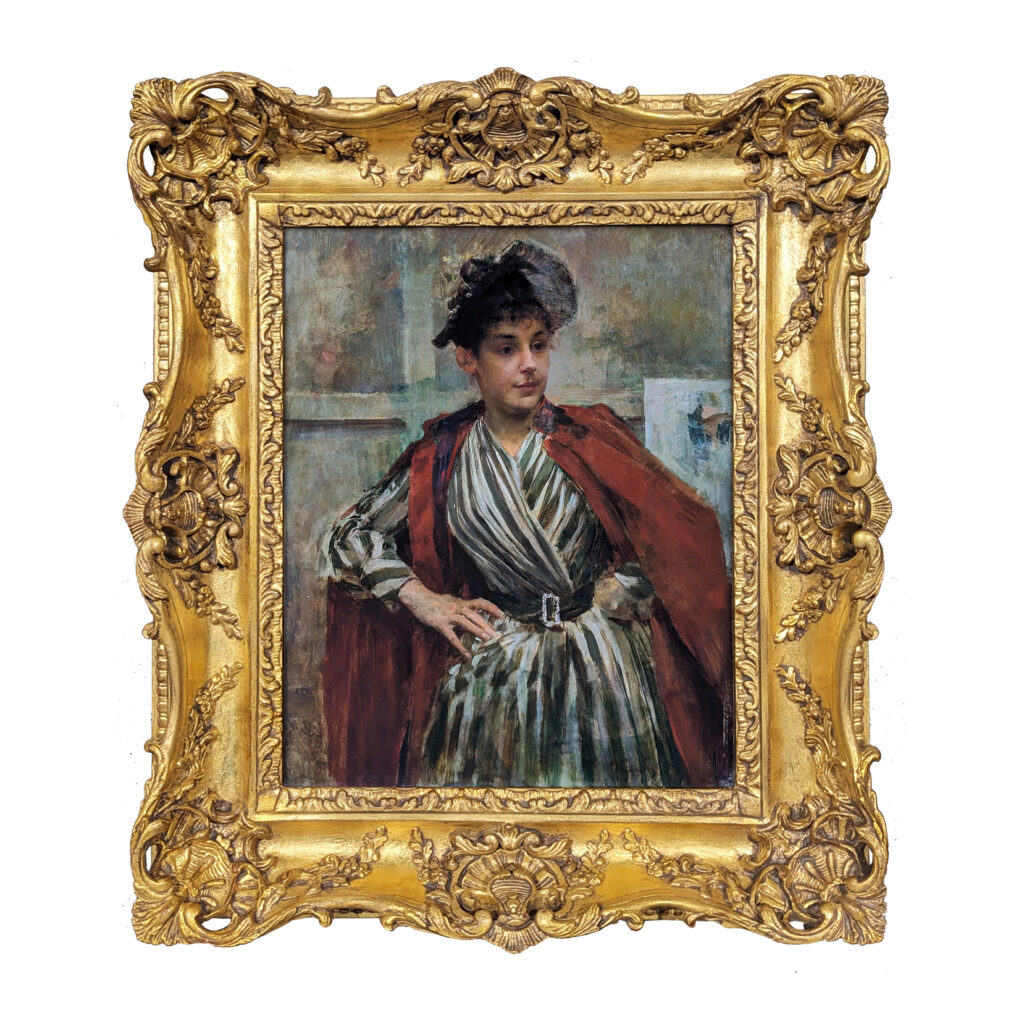 Vojtěch Adalbert Hynais is a famous, award-winning Czech Painter & founding member of the Vienna Secession. He began studying at the Academy of Fine Arts, Vienna in 1870, under Carl Wurzinger & August Eisenmenger, & at Anselm Feuerbach’s school in spring 1873; he was considered to be one of his most promising students. Hynais lived in Paris from 1878-93, where he learnt from Paul-Jacques-Aimé Baudry & Jean-Léon Gérôme, & was an acquaintance of fellow Czech master, Alfons Mucha. In 1885, he received an honorable mention from the 1885 Universal Exhibition of Fine Arts, and a first-class medal at the 1889 World’s Fair. During the 1870s, art was being produced to decorate the under-construction Prague National Theatre. Hynais was not considered to be suitably representative of the national spirit by Czech art critics because he lived in, & had absorbed too much influence from, Vienna. Hynais’ work for the National Theatre of Prague is what he is mostly remembered for; he was part of the “Generation of the National Theatre” In 1894, his work won a medal, first class, at the Antwerp World’s Fair. He became a professor at the Academy of Fine Arts, Prague in 1894. While living in Prague, Hynais was a founding member of the Vienna Secession, where he was a contemporary of Gustav Klimt. In 1900, Hynais painted the ceiling of the Pantheon in the Royal State Museum, Prague; Hynais’s parts were described as being “the best of what was created in the whole vast building and perhaps in all of Prague”. In 1923, he was made an Officer of the Légion d’honneur, & in 1924 was granted an honorary professorship at the Prague Academy. His works are represented in several major institutions, including the National Gallery Prague! The sitter of this portrait is most likely Suzanne Valadon, as referenced in a supplementary pastel.