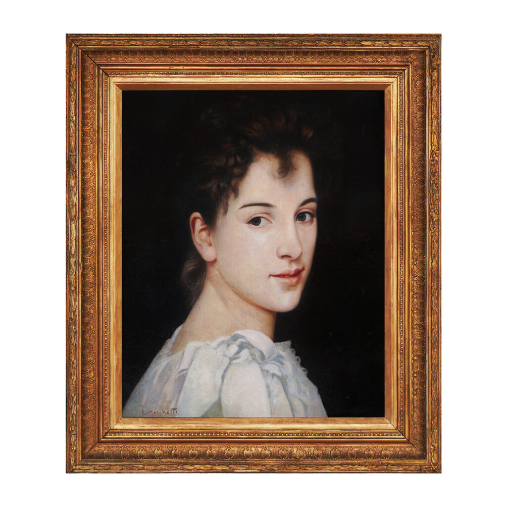 Marchetti was a prominent Italian Romantic & Genre painter. He trained under Spanish Realist Master, Mariano Fortuny y Marsal who had a studio in Rome during the early 1870’s. By 1878, at the age of 25, Marchetti left for France. Here he continued his studies and began exhibiting at the Paris Salon, as well as exhibition halls in Berlin and Munich. Like many of his contemporaries, Marchetti specialized in historic paintings – scenes from the bygone era. Among his favorite subjects were the cavaliers and troubadours of the 18th century – dressed in there richly colored clothes. Marchetti would have known Bouguereau as they were both in Paris at the same time sharing the same dealer, Adolphe Goupil. The portrait is of Pierre Cot’s (another well known artist) daughter and was given as a wedding present. It was the only non-commissioned work Bouguereau ever did and was kept inside the family until 1983. It was only exhibited once to the public at the Paris Salon in 1891, where Marchetti would have seen it as he was a regular Salon exhibitor, unless Bouguereau or Cot gave him a private viewing. The original sold for $AU300k in 2011.