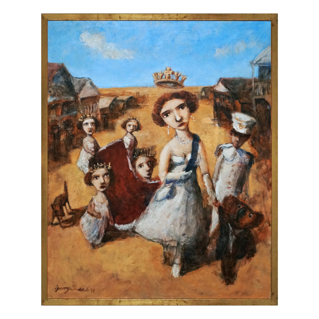 Shead is an award-winning painter, filmmaker, cartoonist and Archibald and Dobell Prize winning artist. He studied at the National Art School before establishing himself as one of Australia’s most respected and sought after contemporary & figurative painters. He has created many celebrated series of paintings including the ‘Royal Suite’ and the ‘DH Lawrence’ series. His work is represented in most major public collections in Australia, particularly the Art Gallery of NSW. This stunning original oil comes from his “Royal Suite”, and was illustrated in Sasha Grishin’s “Encounters With Royalty” (1998) publication.