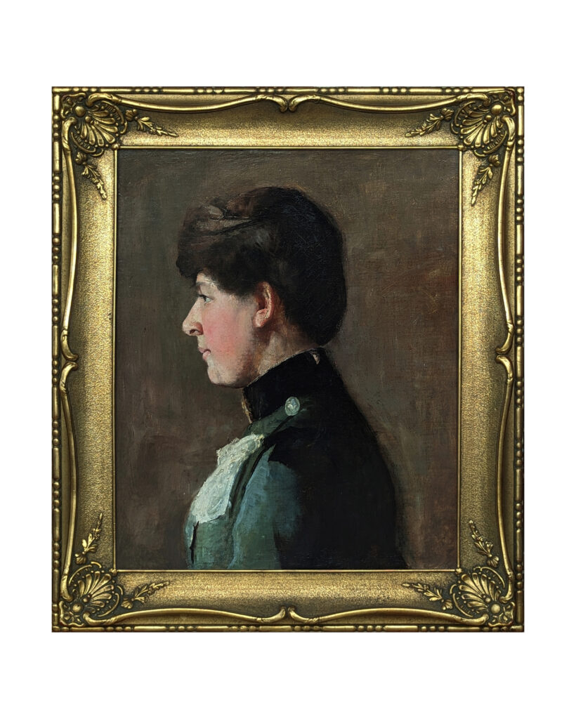 This impressive portrait depicts Annie Marion Peirson (nee Hendrickson) (1872-1957). Peirson was a student of the National Gallery School. The painting was passed to her sister, Christina, & passed down her family; the influential Grant-Hay family, known brewers, pastoralists & horse breeders. It was authenticated by Dr Helen Topliss, who produced Roberts’ Catalogue Raisonné in 1985.